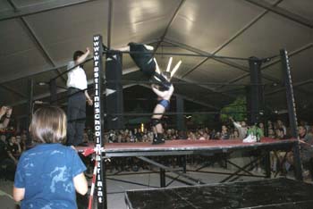 EM-FIGHT: HUNGRY LION besiegt DARREN BURRIDGE mit einem "Top-Rope-Ellbowdrop"