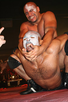 Zum Höhepunkt von Wrestling Rockt II wurde DARKSOUL nach hartem aber fair geführten Kampf von HUNGRY LION dem Voodoopriester aus Nigeria besiegt.